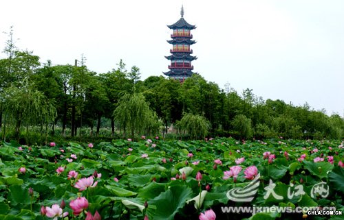 象湖六月中 荷花別樣紅(圖)