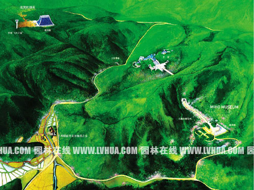 --自然與建筑的融合 日本MIHO美術館是著名建筑師貝聿銘先生的作品。該美術館于1990年開始設計.1997年11月3日建成開館。它雖然名為美術館.但實際上是一個博物館。它的特色是收藏了大量精美的東方藝術品.在建筑設計上也體現了現代科技與東方美學內涵的結合。它與基地周邊環境具有微妙的關系.它所在的滋賀縣信樂山在日本自古就充滿神秘,有著悠遠的宗教歷史背景。而這美術館和業主的教堂(設計紐約世貿中心的建筑師山崎實作品,1983年建成)、鐘樓(也是貝聿銘作品,1989年建成),以及山腳下的“信樂之鄉”生態農場示范區形成藝術、自然及建筑相互共鳴的場所。 總體鳥瞰水彩圖紙。圖紙西北側為業主的教堂和鐘樓.東側為MlH0美術館,西南側為“信樂之鄉”生態農場示范區。三組建筑群隱藏于信樂山的森林之中(南云設計繪制水彩畫) 一、理念 MIHO美術館表達了貝聿銘先生的一個主要理念.就是“自然與建筑的融合”。 日本MIHO美術館的選址就反映了貝聿銘先生的上述理念。他提到.原來業主方選擇的用地是在兩條河的交匯處,但是要到達該處必須要從山上面繞下來.他覺得不是很合理,就回絕了這個項目的設計要求。不久,業主方又找到了其它的地塊,可由于沒有合適的道路方便交通通行成了最大的問題。由于修建道路要破壞山林的生態環境,貝先生再一次拒絕了這個方案。后來.業主方的一位成員可以出讓這塊建設用地對面的土地,于是貝先生想到了在兩個地塊中間挖一條隧道,然后不破壞環境.不砍伐樹木,架一座吊橋,這樣就形成了本項目最精彩的入口景觀區域。 左圖:在隧道和橋梁上方的山坡上拍攝美術館.可以眺望遠山上的鐘樓和教堂(水野敬久拍攝) MIHO美術館的立意也來源于貝先生的上述理念。由于他具有很深的中國古典文化造詣,所以貝先生引用了中國晉代陶淵明的《桃花源記》表達了該設計的立意。當他提到桃花源時,深諳中國傳統文化的業主馬上就聯想到了典型的中國古代景觀,有山坡、峽谷,周圍云霧繚繞,建筑掩映在森林之中若隱若現的場景。建筑師描繪的畫卷和業主的夢想達成了共識,文學和藝術的深遠內涵共同滲透到MIHO美術館的建設工程之中。 右圖:貝聿銘顯色用四角錐創造出類似山峰或峽谷的形式.使該建筑與周邊的群山融合在一起。四角錐的形體大量使用玻璃和鋼結構(照片][MIHO美術館宣傳冊) 在Gero yon Boehm(以下簡稱“波姆”)采訪貝聿銘先生時,曾針對MItlo美術館如何協調建筑與自然的過程提問道:“您是個對自然極為敏感的人.聽說博物館所在的山丘在您建設時突然消失了兩年,您能講一下其中有趣的故事嗎?”貝先生回答說.這個建筑設計由于日本《自然公園法》的限制使之大部分建筑物都在地下,因此問題就是如何在面積有限和地形制約的情況下建造大面積的地下建筑。解決上述問題有兩個方法,第一就是往下挖,將建筑物建于其中.但是該方案既貴又慢,而且還要面對地震的問題;第二個方法就是挖土并將建筑物建于其中,再將土蓋上。由于當地政府同意第二個方法,并要求把挖走的土回填回來并必須種上與原來同樣的樹.因此,山丘消失后又原樣修復.并使建筑與自然更有效地融合了。 從波姆對貝先生的采訪中.他提及MIHO的設計靈感取材于日本江戶時代的農舍。 而本項目的業主追求用純天然的農耕方法來創造食物.并以山腳下的“信樂之鄉”農場示范區與山谷中的MIHO美術館相互呼應。該農場示范區中有兩座200年歷史的古代農舍,具有江戶時代的風格,是業主特意從日本琵琶湖的東北處搬遷到這里的。這兩座古農舍注重的是建筑本身的實用性.而非裝飾性,如從粗線條曲線的大梁到簡潔質樸的墻壁和地板都可以體現出來,這古農舍所采用的屋頂是由茅草搭成.這些都說明了它們是大自然的一部分。而且它們與MIFt0美術館相同之處在于,它們都是完全融于周圍的自然風景之中的建筑。 “信樂之鄉”生態農場示范區中的兩座2000年歷史的古農舍(小池澄男 拍攝)
