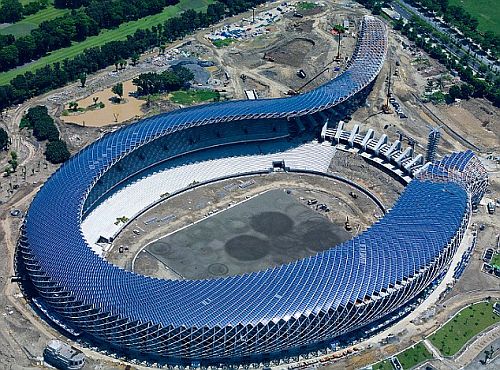 當(dāng)筆者首次看到這幢建筑物時,筆者回想起現(xiàn)代派建筑大師路易·康(Louis Kahn)的作品。路易·康以古典的手法努力設(shè)計現(xiàn)代建筑——使玻璃、混凝土和鋼鐵充滿歷史氛圍。但伊東豐雄的設(shè)計使這種思想完全改變。排列在圖書館的外表面的拱形的寬度,從6英尺到幾乎50英尺,有一種隨意的特色。窗戶平放在拱形的混凝土表面,使建筑物的外表面突出,仿佛建筑物被熱縮塑料包封住。 在建筑物的內(nèi)部,拱形相互以奇怪的傾角排列。別的建筑似乎隨意地安排內(nèi)部空間,在一邊,一個巨大的混凝土鼓狀物,放置機械系統(tǒng);在另一邊,是一個有雕刻的樓梯間。非正式展覽空間的地面緊隨著周圍景觀的斜面,以致從內(nèi)部看,二者的關(guān)系似乎是變動的。 這種效果是反古典的。我們認(rèn)為,傳統(tǒng)的拱形,變得有些脆弱和縹緲。古典的條理性消失。這種設(shè)計的目的,是從歷史的重壓下解放我們。并且,在這個過程中,開發(fā)想象的可能性。從這個圖書館的設(shè)計完成以來,伊東豐雄的的雄心導(dǎo)致出現(xiàn)一系列驚人的新的設(shè)計。例如,他設(shè)計的、最近在東京投入使用的“座·高丹寺公共劇院”(Za-Koenji Public Theater),使人想起日本建筑師筱原一男的“高壓線下的住房”(House Under High-Voltage Lines)。但伊東豐雄的建筑更栩栩如生,反映了它在忙亂的勞動階級場所的活力。 從直接通過這個劇院前面的一條高架鐵路看過去,這個劇院的不規(guī)則的、類似帳篷的形式,似乎是圍繞著它的各種力量碰撞的結(jié)果,例如高速火車和神秘的分區(qū)制要求。在內(nèi)部,在前廳的后部,一道寬敞的橢圓形樓梯引導(dǎo)人們上樓。巨大的“舷窗”,嵌入了劇院的屋頂和墻壁。這是一種簡單的、價格低廉的建筑,然而,它的神秘的形式,啟發(fā)了你的想象,改變了你對圍繞它的街區(qū)的看法。 相比之下,44,000個座位的“高雄體育場”(Kaohsiung stadium)的設(shè)計,似乎與渴望一個大的賽事,共享一種激動人心的體驗一樣。當(dāng)傳統(tǒng)的體育場設(shè)計來與外界隔離時,伊東豐雄的體育場最大限度地讓我們意識到,它同時仍然產(chǎn)生了一種封閉的感覺。 從這個體育場的主要入口看,這個體育場像一條巨蟒,它正開始盤繞它的獵物。它的尾部伸展到一邊,形成一個巨大的“入口廣場”。當(dāng)這個體育場沒在裝滿觀眾的時候,人們將能夠從“廣場”漫步通過大門,并且坐在運動場邊上的草地上,模糊了內(nèi)外之間的界線。 體育場的內(nèi)部,天棚上纏結(jié)的管道向內(nèi)卷曲,并且圍繞著看臺,蓋住了觀眾。同時,周圍的環(huán)境被隔離在外面,大多數(shù)座位可以看到市區(qū)。效果是突出的:在觀眾不感到在集中而特別難受的情況下,安排的空間保持了觀眾注意力集中在巨大的體育場。
