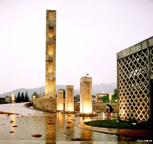 水文化是都江堰的淵源和主要場所特征。用現代景觀設計語言,體現古老、悠遠且獨具特色的水文化,以及圍繞水的治理和利用而產生的石文化、建筑文化和種植文化是本設計的主要特色,在施工中間,我們大量使用當地原生材料來詮釋這一特色,使整個廣場表現出質樸凝重、淳厚親和的整體風格。