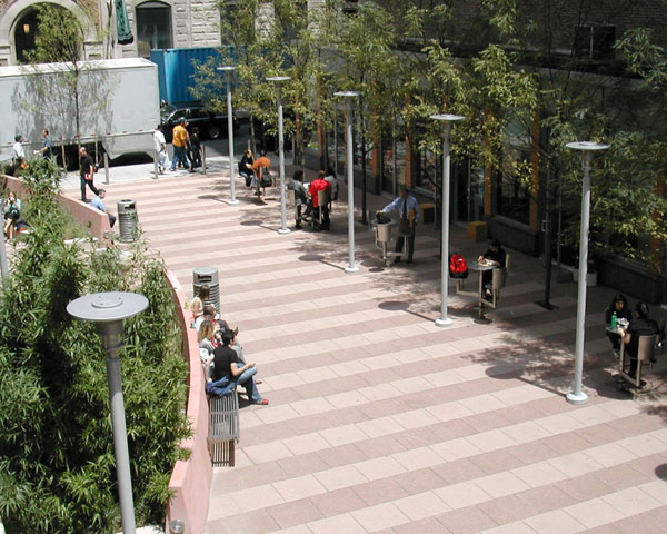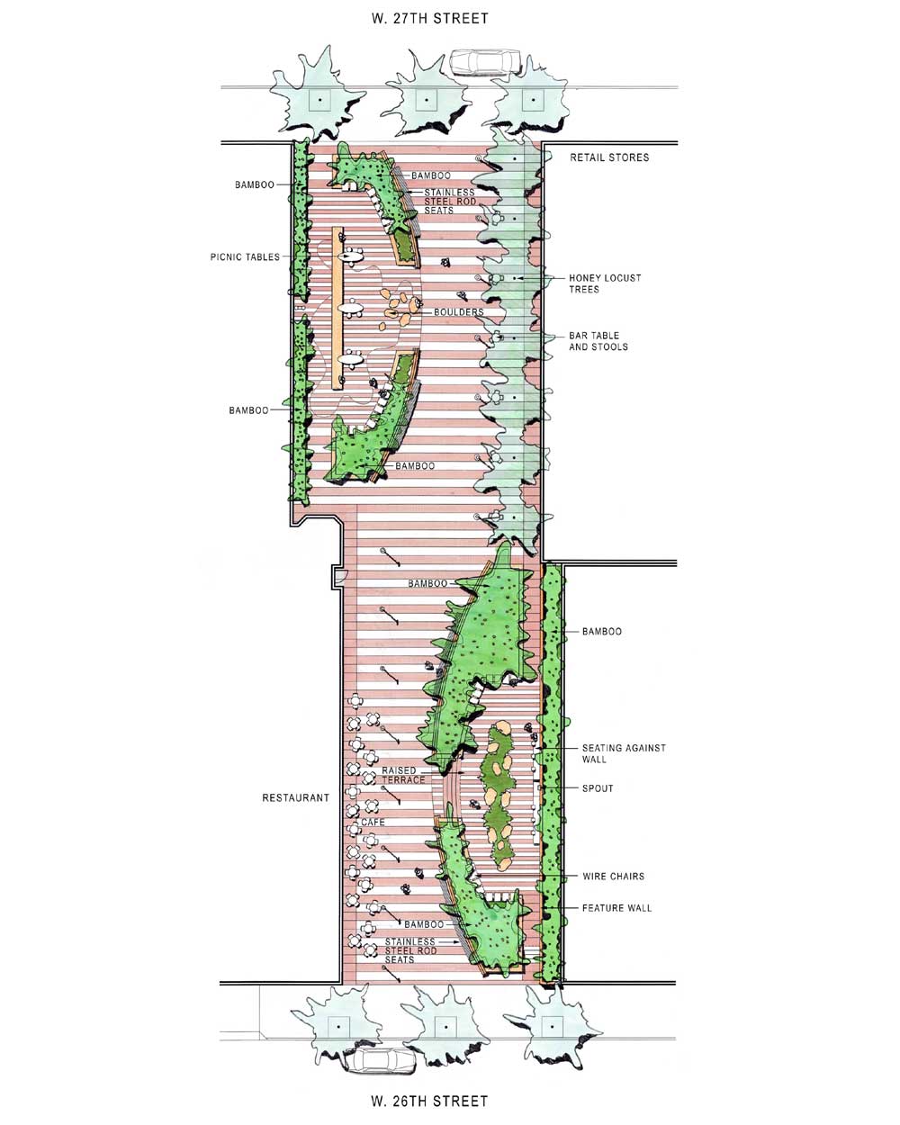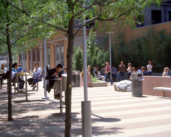 Capitol Plaza位于Chelsea Heights嶄露頭角的居民區(qū),在weekend antiques markets 和Flower District shops中間。這個開放的公共空間連接著26街和27街,東邊有Sixth Avenue, features garden seating areas, 散步區(qū)和小餐館。在曼哈頓地區(qū)公共開放空間比較少,Capitol Plaza的設(shè)計目標是給人們提供一個可休憩的空間,人們可以觀賞植物,就餐和逛商店。