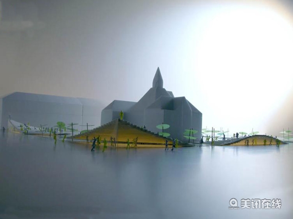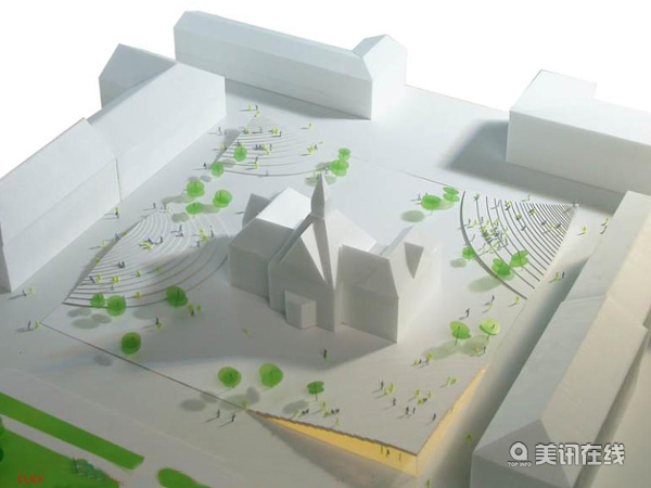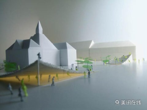由于Umea市政廳廣場上充斥著各種臨時搭建物與快餐店,因此BIG事務所受委托對其進行重新設計,并將其改造成為一種曲線形的表面結構,并將各種小型的服務設施抬高架設,而商店與咖啡座則朝向人行道進行設計。經過改造后的市政廳廣場已經儼然一塊優雅的彎曲飛毯,上面有各種戶外活動區,顯然是對古老的市政廳大樓的一種贊賞。