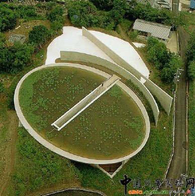 這是一座非常特別的建筑物。安藤忠雄將主體"寺"建立在一個很大很大的荷花池下,從外觀或許看不出那是什么,但沿著它的樓梯向下走,就會發現,別有洞天!這項作品也將安藤使建筑與自然結合的信念發揮得淋漓盡致。