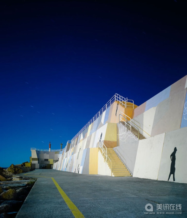 當你在遠處看這幅畫的時候,你可能分辯不出哪是真人,哪是畫中的人物。最后,畫上還寫上了一些文字,讓它更加具有娛樂性。每段文字看起來似乎有一些隱含的意義,這些意義可能和防波堤有所關系。