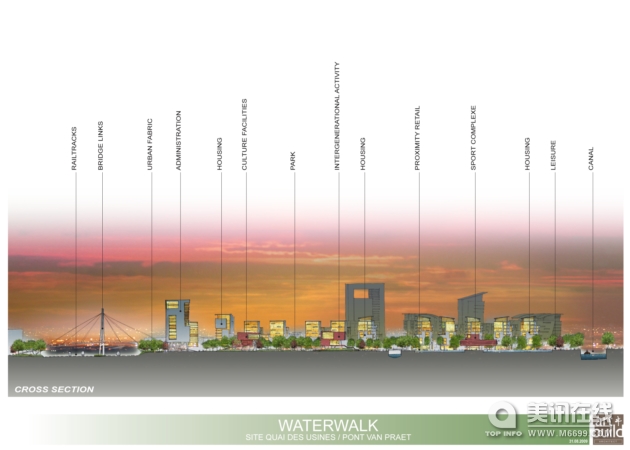 Water walk以城市生活質(zhì)量為中心,解決了布魯塞爾有限的生活空間的問題,對未來的發(fā)展進(jìn)行了鋪墊。通過零能量的使用和滿足C2C的要求,此方案也為整個(gè)地區(qū)提供了可持續(xù)開發(fā)的標(biāo)準(zhǔn)。