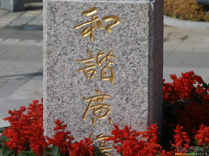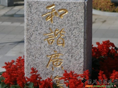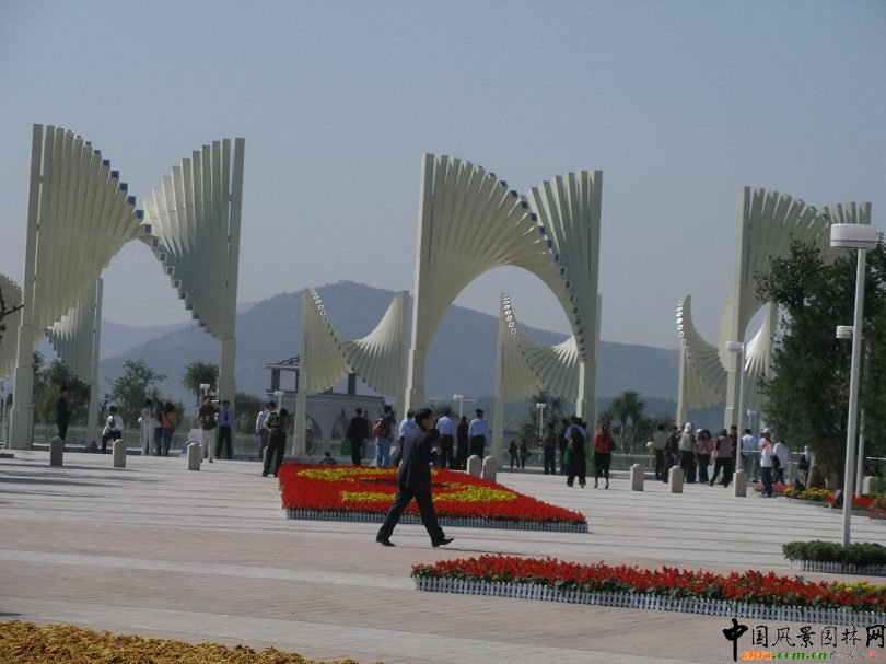 中國風(fēng)景園林網(wǎng) 濟南園博會和諧廣場位于地方廣場南側(cè),面積18.3萬平方米,是園博園的核心廣場。它延續(xù)了"天圓、地方"的發(fā)展理念,構(gòu)成了"人和"的意境,一方面體現(xiàn)了"天、地、人"的和諧統(tǒng)一,另一方面體現(xiàn)了國內(nèi)外參展城市歡聚一堂的融洽氛圍,形成了入園后景觀序列的高潮。和諧廣場為下沉式廣場,四周是階梯式的觀演臺,可容納2000-3000名觀眾,中間是圓形的下沉廣場,可作為演出舞臺,這里是園博會期間舉辦活動、進(jìn)行演出的主要場所。游客坐在觀演臺上,還可欣賞西側(cè)湖面上的大型音樂噴泉。觀演臺外側(cè)設(shè)有紀(jì)念品銷售、餐飲等綜合服務(wù)設(shè)施,是園內(nèi)主要的購物、休憩場所之一。