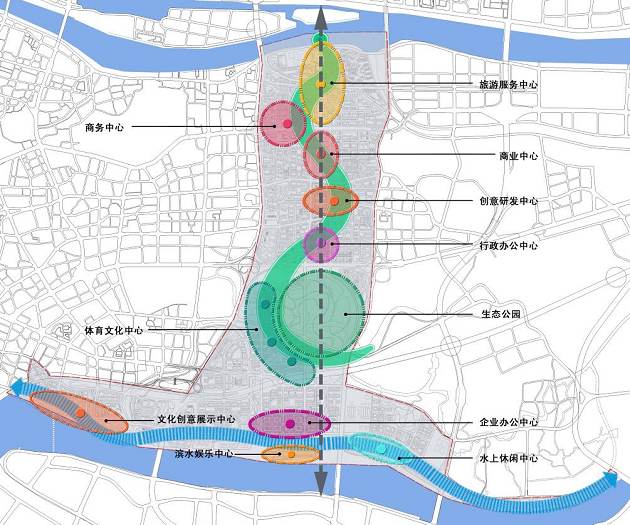 各核心功能區(qū)沿曲線活力帶設(shè)置,使之成為凝聚市民生活、展現(xiàn)廣州城市風情的城市“會客廳”,使中軸線南北兩段分別從不同角度詮釋廣州的城市形象,展現(xiàn)廣州獨特魅力。