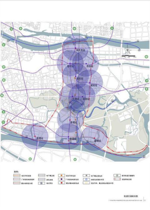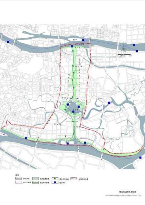 建立快捷、高效軌道交通,以800米服務半徑計算,規劃范圍內,軌道交通服務范圍覆蓋率達到80%;核心區范圍內,軌道交通服務范圍覆蓋率達到90%。設置高架觀光列車,鏈接觀光塔—行政辦公區—海珠湖—新客港地區。站點布局與新客港、觀光塔、海珠湖等城市重要設施整體考慮,方便換乘。