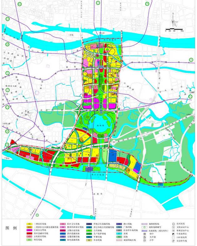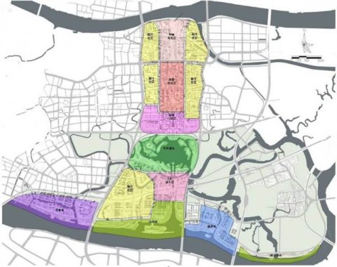 在規劃中確定的中軸觀光區,消費商業區,湖濱行政區,文化娛樂區,創意灣,國際灣,休閑灣,中央濕地等7大城市核心功能分區及其周邊居住社區,構建起活力中軸線的多元城市功能布局。