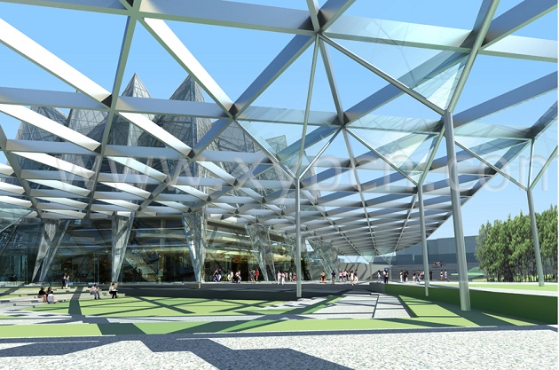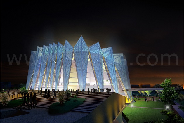 在我們心目中,劇院主體將由三維多棱面形成鉆石狀外殼,觀眾廳和舞臺置于其中。二者之間的側面空間,是進廳和休息廳,上面是餐飲等服務空間。鉆石狀的外形使這座建筑具有獨一無二的標志性。多棱面的外墻,在白天反射著變幻的風云,夜晚則在腳光的反射和數控的發光體照明下,通體晶瑩,變幻莫測。頂部向北略傾,使鉆石的棱面更豐富多變。不但從鳥瞰的高度,更可以從人體的視點來欣賞它的立體形象。鉆石高貴而永恒,時尚而典雅。在鉆石級地段的鉆石建筑將既現代而又經典,吸引著市民和世界各地的朋友們。