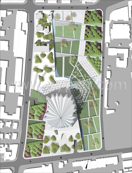 綠文結合;現代而又不失經典;保留歷史的軌跡而又與時代的脈搏一起跳動。這三句話是業主的愿望,是他們體會并歸納了上海市民,專家和領導的對文化廣場的向往和期許總結出來的。這三句話凝練而經典,看似平淡而品味極高。建筑是凝固的音樂,景觀是氛圍的結晶。我們的設計理念,就是要潛心體驗上海的歷史軌跡和時代脈搏,用建筑和環境的音符和氣氛把這種向往和期許轉化為現實的空間。建筑師在創作時和音樂家作曲時很相像。我們在設計理念的抽象天空中翱翔,像捕捉旋律那樣去捕捉形象。