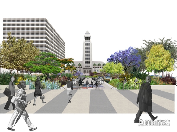 洛杉磯被認(rèn)為是一座沒有連續(xù)性的城市,要體驗(yàn)這座城市,坐車比步行的感覺要來(lái)得好。居住在“盒子”里的人們也比較喜歡將他們自己封閉起來(lái)。不過(guò)這一切都面臨著改變。洛杉磯緊鄰市政廳的中心區(qū)將興建一座面積達(dá)12英畝的市民中心公園。這個(gè)“多文化公園”由洛杉磯當(dāng)?shù)氐腞ios Clementi Hale Studios設(shè)計(jì)事務(wù)所設(shè)計(jì)。整個(gè)項(xiàng)目分為四個(gè)區(qū),市民聚會(huì)和舉辦音樂會(huì)的草坪、一個(gè)多文化的社區(qū)露臺(tái)、帶舞臺(tái)的表演場(chǎng)和一個(gè)大型的公共廣場(chǎng)。 依照目前的情況來(lái)看,項(xiàng)目設(shè)計(jì)存在許多挑戰(zhàn)。“雖然原址也是一個(gè)公園,但是其功能發(fā)揮得并不好。”與設(shè)計(jì)事務(wù)所合作的項(xiàng)目負(fù)責(zé)人Tony Paradowski說(shuō)道。公園四周都是高大建筑,限制了它的可視性。通過(guò)一系列的工程行動(dòng),設(shè)計(jì)師將原址公園進(jìn)行了一番“脫胎換骨”的變化,“新出爐”的公園設(shè)計(jì)風(fēng)格大膽創(chuàng)新,給人一種全新的感受。“首先第一步就是增加公園的可視性。”Paradowski說(shuō):“其次增加了公園的綠色空間,如一個(gè)可以容納3000人的聚會(huì)草坪。”和預(yù)想的一樣,草坪在平時(shí)還可以充當(dāng)日光浴和看書的好地方,就與紐約中央公園“綿羊的牧場(chǎng)”一樣。 項(xiàng)目設(shè)計(jì)花了三年時(shí)間,如今正在等待審批。如果通過(guò),項(xiàng)目將在2010年破土動(dòng)工,2012年春對(duì)外開放。