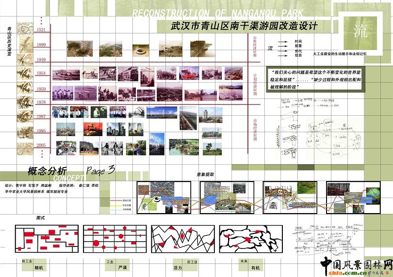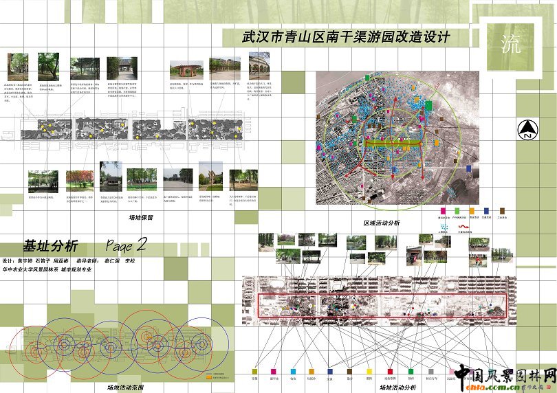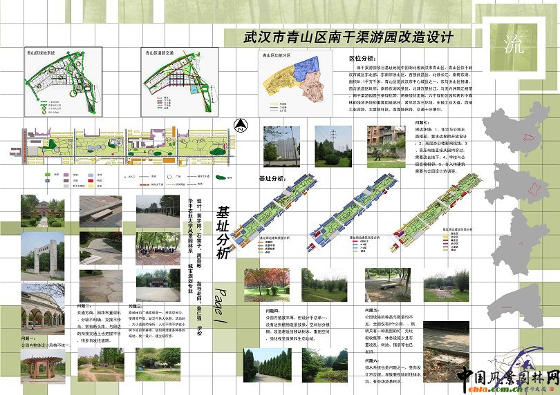 中國風(fēng)景園林網(wǎng)訊 本設(shè)計是中國風(fēng)景園林網(wǎng)的畢業(yè)生系列作品展作品之一,來自華中農(nóng)業(yè)大學(xué)園林系09屆畢業(yè)生。 武漢市青山區(qū)南干渠游園改造設(shè)計 區(qū)位分析: 南干渠游園項目基址地處中國湖北省武漢市青山區(qū)。青山區(qū)位于武漢市城區(qū)東北部,東南鄰洪山區(qū),西接武昌區(qū),北瀕長江,南倚東湖。面積61.1平方千米。南干渠游園是三條綠化帶、兩條綠化走廊、六個綠化公園和兩片小森林的綠地系統(tǒng)的重要組成部分。緊鄰武漢三環(huán)線,東接工業(yè)大道,西接工業(yè)四路,北靠居住區(qū),南靠隨州路,交通十分便利。 ![]() ![]() ![]() ![]() ![]()