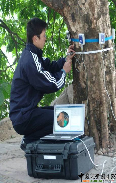 應(yīng)用德國(guó)進(jìn)口的PICUS彈性波樹(shù)斷層畫(huà)像診斷裝置對(duì)古樹(shù)主干進(jìn)行現(xiàn)場(chǎng)檢測(cè)分析。