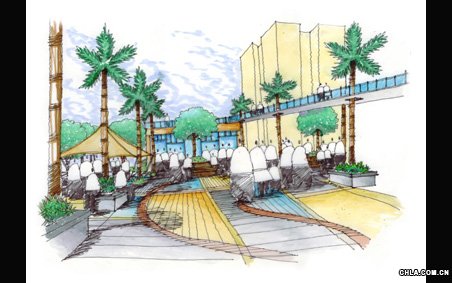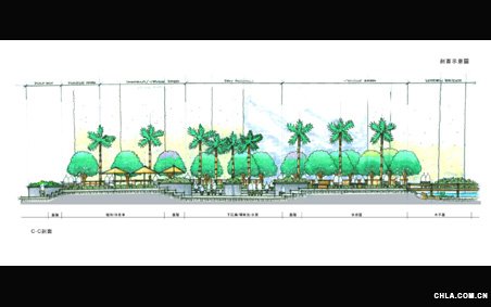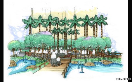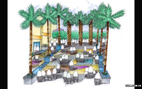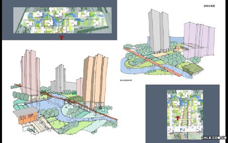 設計強調模數(shù)在景觀元素中的重要性。多層住宅組團相互呼應將高層住宅區(qū)域包圍其中,以立體式的開放草坪與陳列植物交錯圍合的活動空間為特色。s形水帶穿梭于高層建筑群落間,水體與建筑緊密與疏離的關系,增加這一區(qū)域設計的景觀層次。入口與沿街商業(yè)空間在建筑層次上富有動感與趣味性,景觀與建筑的有機結合使人們的購物休閑活動充滿樂趣。