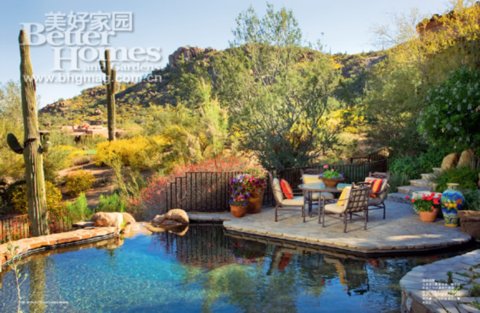 ![]() 結合環境 與其說它是游泳池,倒不如形容它為沙漠里的綠洲,只因它的周圍多了石板和植物的裝點。這就叫做靈活運用自然元素,讓你的起居區與景色結合。
