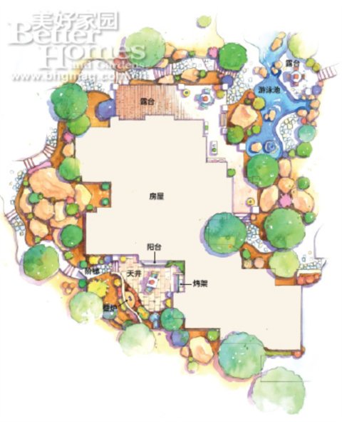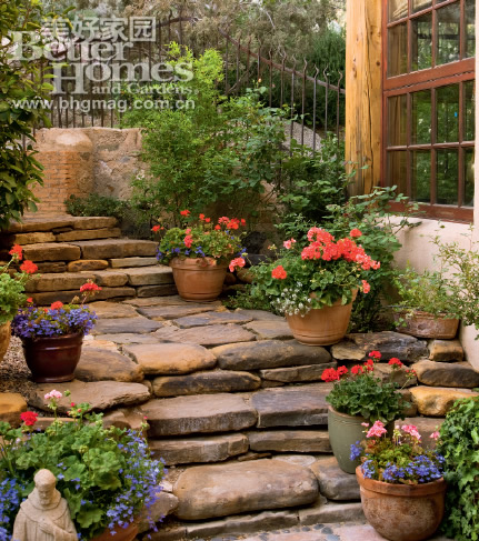 ![]() 花園規劃圖 尋找天然的材料做舊 美國亞利桑那州的建筑師蘭蒂·阿尼特羅梅羅專門建造樣子老舊的建筑,要想得到做舊的效果,使用天然的材質是關鍵,比如讓石頭、粘土、鐵器看上去像是已經在那里呆上了一百年。就拿建造亞利桑那房子的臺階為例,他精選了天然風化的卵石鋪制,因此每級臺階都顯得陳舊無比。“我們找來表面平滑、一邊已經磨圓的石頭,鋪到每級臺基上。因為石頭磨損得厲害,好像人們已經踩著它走了幾十年。”蘭蒂說。
