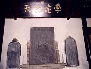 在朱子祠之東廂,設有碑廊,內嵌宋至明清古碑一百二十余塊。在這些古代碑刻中,有朱烹的手書真跡,也有署為紫霞真人的明代狀元羅洪先的《游白鹿洞歌》。這些名跡,筆鋒莊重遒勁,運筆嬌若游龍;它既是彌足珍貴的書法藝術品,又是具有研究價值的重要歷史資料。