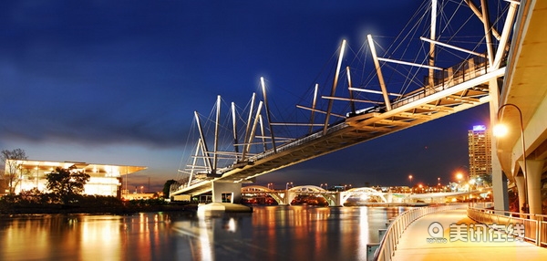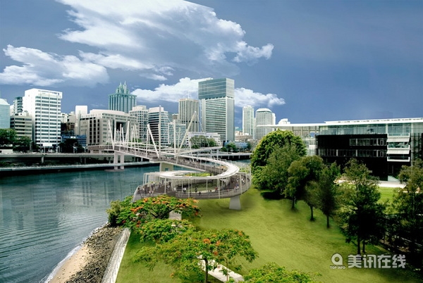 這項預算達6,330萬美元的Tank Street天橋工程,將為布里斯班市中心提供一個新的自行車及人行天橋通路,使得市中心區(qū)與南布里斯班彼此聯(lián)系起來,并通過另外一條行人與自行車橋——友好大橋?qū)⑹兄行呐c南岸公園連接了起來。 Tank Street天橋?qū)儆谟刹祭锼拱嗍凶h會于2006年提出的之中心總體規(guī)劃與昆士蘭政府的2008-2006年昆士蘭東南地區(qū)技術(shù)設施規(guī)劃中的一部分。其設計與修建始于2007年10月1日,預計將于2009年9月完工,屆時正好趕上昆士蘭州150年紀念慶典。該天橋從Tank Street的北碼頭一端一直綿延到南布里斯班的Kurilpa Point,靠近新的昆士蘭現(xiàn)代美術(shù)館大樓。 Tank Street通過不銹鋼欄桿的裝飾,就像是用緊繃的鋼絲支撐而懸浮在空中的精美雕塑品,同時剛好處于南岸文化區(qū)與商業(yè)中心區(qū)法院的樞紐點上。 該天橋是一個多欄桿的纜橋結(jié)構(gòu),是按照非固定尺寸的原則而設計的整體結(jié)構(gòu),其建筑與工程機制在穩(wěn)定張力與承壓構(gòu)件之間達成了一種協(xié)同作用。 ![]() ![]()