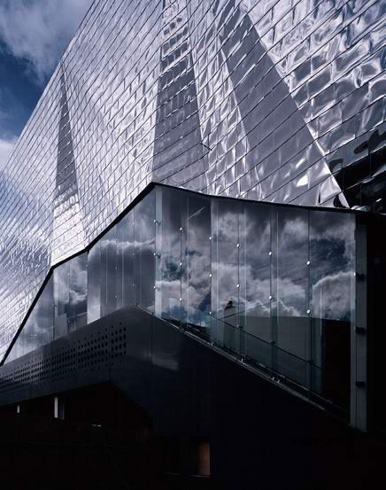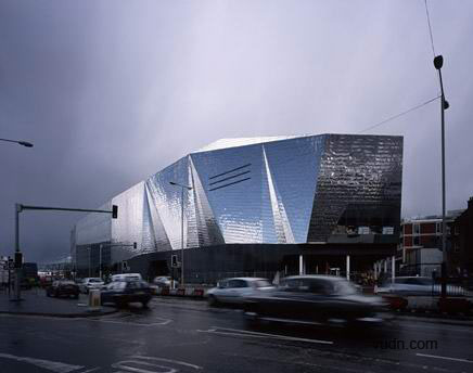 這是FOA的一個較新的商業(yè)中心建筑,位于英國的萊斯特市。建筑包括一家John Lewis的分店以及在同一大樓內(nèi)的一家電影院,電影院有一個封閉的外殼,表皮使用的是起皺的不銹鋼貼面,如同劇場的幕布,同時豐富的光線反射讓其熠熠生輝。相鄰的則是輕盈透明的John Lewis店,多層的蕾絲花邊讓其看起來如同網(wǎng)格窗簾。