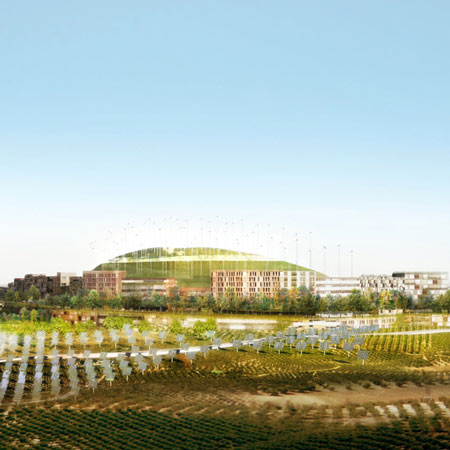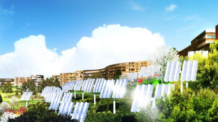 西班牙里奧哈省(Rioja)批準(zhǔn)建造3000套“碳中立”(Carbon Neutral)房屋,地點(diǎn)位于其首府Logrono的北邊。這個(gè)耗資3.88億歐元的“Logrono Montecorvo生態(tài)城”項(xiàng)目將由MVRDV和西班牙建筑公司GRAS合作設(shè)計(jì),并將建設(shè)一座占地56公頃的生態(tài)公園。 這座直線型的城市開(kāi)發(fā)項(xiàng)目將繞過(guò)兩座小山,讓每一座公寓的景觀都面朝城市,并占用總用地的10%,其他用地都用來(lái)建造生態(tài)公園。兩座小山頂部安裝了風(fēng)力發(fā)電廠,朝南的一面安裝了光電電池,用來(lái)發(fā)電,基本上可滿(mǎn)足場(chǎng)地百分百的能源需求。除此之外還建立了灰水循環(huán)系統(tǒng)和天然水純凈系統(tǒng),使得該項(xiàng)目達(dá)到碳中立,并達(dá)到西班牙最高的節(jié)能評(píng)級(jí)標(biāo)準(zhǔn)。 為了盡量降低建造成本,房屋盡可能緊湊,并按照最佳的高度線建造。這個(gè)項(xiàng)目中還將建造體育設(shè)施、零售店、餐館、基礎(chǔ)設(shè)施以及公共和私人花園。 在3.55億歐元的投資中,4000萬(wàn)歐元用于可再生能源技術(shù)。清潔能源的制造和高效施工可每年減少二氧化碳排放量近6000噸。該項(xiàng)目是由西班牙公司LMB和Grupo Progea聯(lián)合開(kāi)發(fā)的,并與Arup公司有過(guò)協(xié)作。