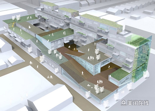 一等獎得主,來自卡爾加里的Sturgess Architecture公司說:“未來建筑一定要生產資源,而不是消耗資源。地基上的所有建筑都不應該讓城市更密集一些,而是為了發展出親近生態和可持續發展的建筑,我們就必需重新考慮傳統的建筑成份,把建筑想象成各種多產的地表形式。”