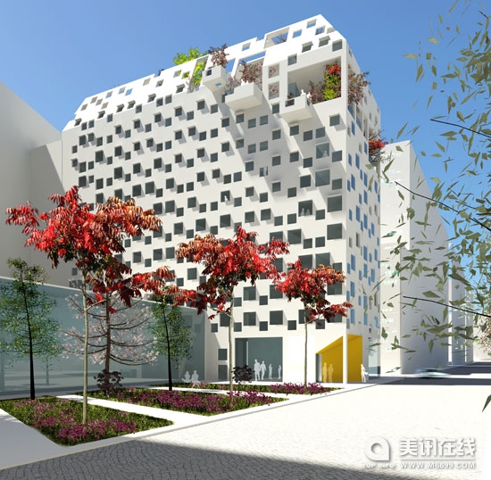 M6B1,一幢位于巴黎開發區的學生公寓,由JDS建筑設計事務所設計完成。公寓左側采用開放式設計,梯田式層層遞增,考慮到更加舒適明亮的居住氛圍,JDS在建筑內部增加了原本屬于建筑外部的元素,如燈光、花草等。這些都為學生公寓營造了一個良好的居住環境。