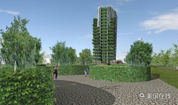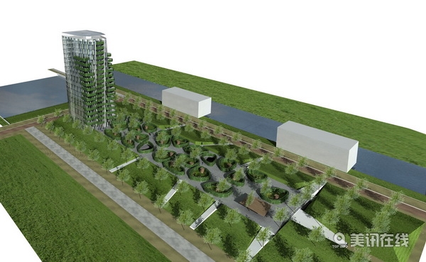 地點:荷蘭阿米爾市 荷蘭阿米爾市組織了一場設計競賽,目的是在瀑布公園(Cascade park)里面修建城市別墅區和一棟住宅大廈。所有參賽設計作品必須要符合一個要求,即使瀑布公園發展成為“可持續之窗”:一個生態、社會與經濟三方面都實現可持續發展的范例,最終FARO建筑事務所設計的住宅大廈在競賽中獲勝。 設計的住宅樓選址非常獨特,可以說是瀑布公園的頭部,又是尾部,至少可以容納57家住戶。大廈已經成為公園的一部分,使公園在這個“綠色陽臺”的庇護下朝著更有益于公眾利益的方向發展。同時,設計師還給每一個住戶設計一個私人花園。 宏觀上來說,這是一個極富可持續化特點的建筑,其幕墻是用玻璃板與PV-PCM板制作的,屋頂又太陽能電池板與雨水收集器,收集起來的雨水可以用來灌溉花園與陽臺,大廈也可以終年不使用外來能源。另外,大廈還體現了一種高品質的可持續特點,居民可隨時在瀑布公園里散步休閑,真正做到了住宅去中的公園和公園化的住宅區,各種設計元素可為這個垂直城市提供一種和諧的鄰里關系。例如,大廈里開設有餐廳、DIY手工制作商店和會客區。 大廈的建設有多種方法,可按照住戶的數量靈活進行樓層布局。如果日后生活方式有了新的變化,該大廈也能很方便的做出相應調整。評審團贊賞FARO事務所的這一住宅大廈是現實主義的“舒適化可持續”設計。