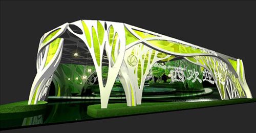 廣西館外立面設計抽取榕樹的形象概念 近日,上海世博會廣西館的主題和展館設計方案最終確定,在廣西館600平方米的展示空間里,廣西壯族自治區將圍繞“綠色家園,藍色夢想”的主題,集中展示廣西“銅鼓、繡球、壯錦、壯歌海洋、漓江風景、龍脊梯田、陽朔西街、紅樹林、北部灣、海上絲綢之路”的風情和魅力。