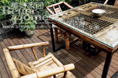 除了本土的植物之外,李怒還親自制作了茶桌,他設(shè)計(jì)好鐵架,找來民居里的窗框,放上玻璃板,一個(gè)簡約而有民俗特點(diǎn)的茶桌就成了,再搭配上四川茶館里常用的四方椅,就有了當(dāng)?shù)厝嗽诓桊^里的閑情逸致,自然也多了一份獨(dú)特的巴蜀風(fēng)情。