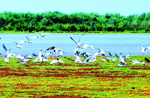 三、突出生態(tài)建設(shè),打造黃河金岸景觀長廊。石嘴山市以創(chuàng)建國家園林城市、國家森林城市為載體,按照大綠化、大水面、大空間的理念,以濱河大道、包蘭鐵路等沿黃主要交通干線、重點生態(tài)環(huán)境建設(shè)區(qū)為切入點,加大沿山、沿水、沿路生態(tài)綠化建設(shè),打造黃河金岸發(fā)展軸,構(gòu)建城鎮(zhèn)“大生態(tài)”框架。高標(biāo)準(zhǔn)實施了濱河大道、瀚泉海二期、浴山潭廣場、包蘭鐵路兩側(cè)綠化等28項生態(tài)綠化工程,完成造林綠化12.15萬畝,新增城市綠地2027畝。大力推進(jìn)濱河大道水系建設(shè),做足水文章,彰顯水特色,發(fā)展水經(jīng)濟(jì)。重點實施了賀蘭山東麓大武口地區(qū)防洪工程、浴山潭滯洪區(qū)及泄洪通道綜合整治項目、星海湖大橋清淤整治及南域連通中域溢流堰和河?xùn)|中型灌區(qū)節(jié)水改造等水利設(shè)施工程,城鎮(zhèn)“大生態(tài)”初具規(guī)模。利用濱河大道兩側(cè)灘涂多、濕地多、湖泊多的特點,建設(shè)濕地公園、生態(tài)氧吧、微地型景觀、沿河水系等,打造景觀長廊。