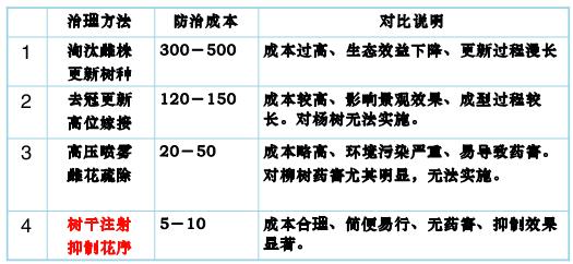 4. 注射楊柳飛絮抑制劑--抑花一號,抑制楊柳樹花序形成。