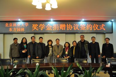 4月7日,北京林業大學與東方園林股份有限公司正式簽訂合作協議,東方園林捐助100萬在園林學院設立“東方園林專項獎學金。此次專項獎學金具體分為“東方園林大學生創新活動項目獎學金”和“東方園林優秀畢業設計(論文)獎學金”兩種方式獎學金。