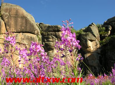 走進(jìn)草原神石城,一路上都有各種野花香草相伴,紅色的、紫色的、黃色的、白色的、粉色的山花開得爛漫之極,風(fēng)從四面八方吹來,清風(fēng)里有山花陣陣的幽香,仿佛還有古老的傳說在風(fēng)中飄蕩,在山花上掠過,最后停留在怪石上。