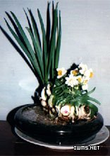 水仙球形鱗莖經過選球、雕刻和組型,構成具有特殊形態的園