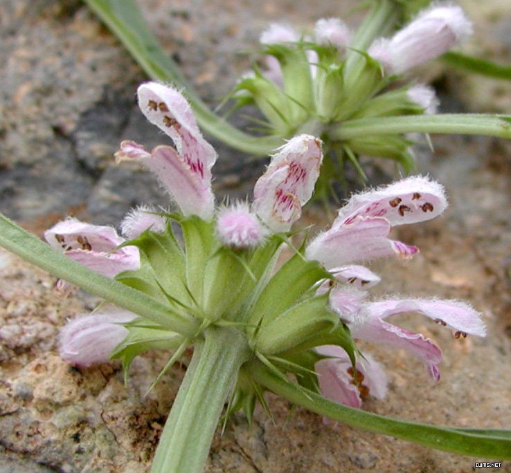 英文名:Motherwort Herb 科屬:唇形科植物 形態特征: 鮮益母草 幼苗期無莖,基生葉圓心形,邊緣5~9淺裂,每裂片有2~3鈍齒。花前期莖呈方柱形 ,上部多分枝 ,四面凹下成縱溝,長30~60cm,直徑0.2~0.5cm ;表面青綠色;質鮮嫩,斷面中部有髓。葉交互對生,有柄;葉片青綠色,質鮮嫩,揉之有汁;下部莖生葉掌狀3 裂,上部葉羽狀深裂或淺裂成3 片,裂片全緣或具少數鋸齒。氣微,味微苦。 干益母草 莖表面灰綠色或黃綠色;體輕,質韌,斷面中部有髓。葉片灰綠色,多皺縮、破碎,易脫落。輪傘花序腋生,小花淡紫色,花萼筒狀,花冠二唇形。切段者長約2cm。 用途: 益母草,又名坤草、益母花等,為唇形科直立草本植物。它是歷代中醫用來治療婦科疾病、益身養顏的良藥,全株富含硒、錳等微量元素,具有抗氧化、防衰老、抗疲勞的功效。它株形俊秀、葉美花妍,是優良的夏季庭院賞花植物。其莖葉可食,味道清香爽口,涼拌或煲湯皆宜,是營養價值很高的野生保健蔬菜。 產地及生長習性: 益母草廣布于全國各地,較常見的還有細葉益母草、白花益母草等。多生于山坡草地、曠野荒郊或路邊,尤以向陽處為多。其株高30厘米至100厘米,莖呈方柱形,葉型變化較大,基生葉和下部莖生葉在花期脫落,多為卵形至近圓形,掌狀3裂。莖中部的葉菱形,較小,通常分裂成3個或多個長圓狀線形裂片。花序上的葉片線形或線狀披針形。輪傘花序腋生,具花8朵至15朵,基部彎曲而外伸,花萼鐘形,花冠粉紅色至淡紫紅色,花后結實為淡褐色三菱形堅果。花期6月至9月,果期7月至10月。 用途: 益母草“除痘養顏膏”的制作使用方法:于夏初采集益母草地上部分,晾干后碾成粉末,用黃瓜榨汁適量、蜂蜜適量,調成糊狀。晚上洗臉后敷面,干后洗去。既可除痘,又可嫩膚養顏。 益母草 是歷代中醫用來治療婦科疾病、益身養顏的良藥,全株富含硒、錳等微量元素,具有抗氧化、防衰老、抗疲勞的功效。 相傳,武則天就因終年使用益母草制成的美容品,令她50歲時,膚色仍像一個15歲少女一樣鮮嫩,80歲時仍容顏不老。 活血養顏湯: 制法: 雞蛋4只煮熟去殼,將益母草30克,桑寄生30克洗凈,然后把熟雞蛋、益母草和桑寄生放進鍋內,用文火煮沸,半小時后,放入冰糖,煲至冰糖溶化。 服用: 除去湯中的益母草和桑寄生,吃蛋飲湯。此方補肝養血,婦女宜于在經前、經后飲用,效果更佳,也可用鵪鶉蛋代替雞蛋,效果相同。