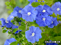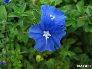 學名 : Evolvulus nuttallianus 科名: 旋花科(Convolvulaceae). 別名:星形花、雨傘花、草本仙丹花 原產(chǎn)地: 北美洲 分佈: 全島山野至海邊 用途: 庭園觀賞美化。 一般用途為庭園美化、花壇、盆栽、或地被。 葉 : 葉互生,長橢圓形,全緣,葉背密被白毛。 半蔓性常綠小灌木。性喜高溫,日照需良好。株高30~60公分,莖、葉背密被白毛。葉互生,長橢圓形,全緣。花腋生,合瓣花,花冠藍色,中心白星形。全年均能開花。 其他: 藍星花是旋花科多年生木本植物。顧名思義,藍色的花朵是她的特色。藍星花極易種植,日照和水分只要充足,全年均能開花。尤其夏季裡,點點淡藍的花朵,點綴著整個花圃,有如夏夜清涼的繁星,真是美妙極了。 繁殖採扦插法,選擇年輕的枝條,斜插入土,保持濕潤,極易發(fā)根成苗。繁殖期以春秋兩季為佳。 花期 : 全年;有趣的是,藍星花的花朵只在早上盛開,下午就謝了. 水份 : 水分的供給很重要,尤其是夏季時,最好每天早晚確認是否需澆水,若缺水過久,植株復原不易,冬天則可剪少澆水次數(shù)。 施肥 : 每月固定施用速效肥. 繁殖 : 扦插法來繁殖,春、秋兩季為適期;可選取枝條約每3~4節(jié)一段,去除最下面一節(jié)的葉片,再斜插于排水良好的介質(zhì)中,約1周即可發(fā)根。 觀賞用途 : 庭園美化、花壇、盆栽或地被。