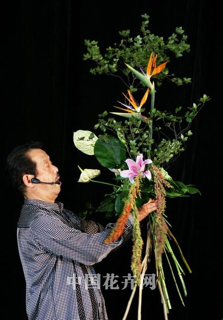 在第七屆中國花卉博覽會上,村松文彥先生的一場花藝表演可謂讓觀眾見識了日本流行的商業(yè)花道。這位1989年獲得花藝世界杯冠軍的花藝師,幾十年來插花風格一再蛻變,近些年凝聚日本傳統(tǒng)花道之底蘊,結(jié)合西方商業(yè)花藝手法,將他的花藝帶出了全新的日式商業(yè)新風尚。 生于1951年的村松文彥先生可以說是日本花壇一顆重量級的人物,1974年畢業(yè)于美國花藝藝術(shù)學校。1982年參與NDF花藝設計全日本大賽獲農(nóng)林水產(chǎn)大臣將,1989成為日本第一位獲得花藝世界杯冠軍的花藝師。隨后到世界各地表演、交流并獲獎不斷。