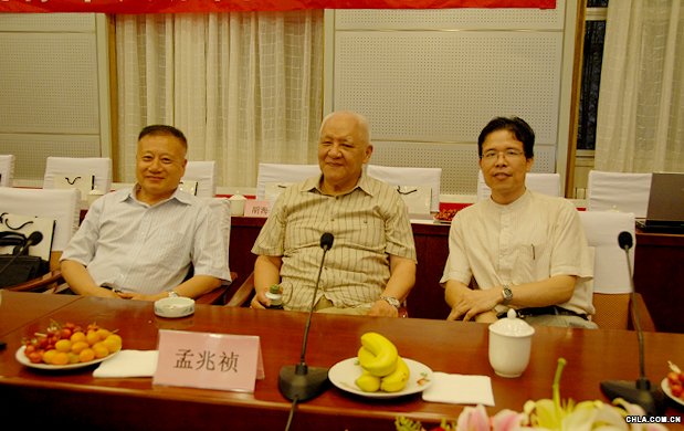 本次會議就中國國際園林花卉博覽會的建設與發展主題,展開了熱烈的交流與討論。下圖為北京市園林局原副局長國務院參事劉秀晨先生(左一)、中國工程院院士 孟兆楨先生(中)、天津大學建筑學院副教授劉庭風先生(右一)會前合影。 北京市園林局原副局長,國務院參事劉秀晨(左一), 中國工程院院士孟兆楨(中),天津大學建筑學院副教授 劉庭風(右一)