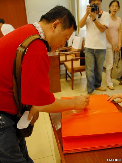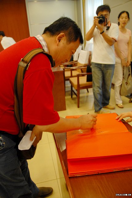 圖為 山東光合園林科技有限公司董事長 王明榮先生 會前簽到