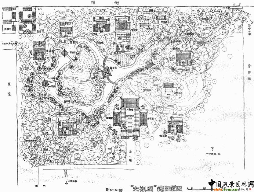 中國風景園林網訊 海峽兩岸中國古典園林文化論壇近日在北京林業大學舉行。東海大學建筑系關華山教授到會做了“紅樓夢的建筑與園林”的學術報告。 關華山教授當年從事斗拱、舉架、彩繪等建筑研究時,總覺得自己的研究還不夠,很想了解中國人是怎么生活的,想深入探究中國宅第生活與空間的關系,關華山教授認為《紅樓夢》是首選,開始了自己的“紅樓之旅”。通過多年研究,從建筑和園林的角度弄清楚了“中國人怎么生活”的問題。以下為關教授報告的精要。 1.宅第部份: 中國宅第空間上存在“位序原則”。如圖: 府第( 莊屯、義學、家廟……) 雖然中國人的理念是依照儒家禮教去生活,但是在《紅樓夢》中,儒家禮教并沒有真正奉行。 2.園林部份: 大觀園是一種“文筆園林”、“小號苑囿”。 ![]() 紅樓夢-大觀園平面圖