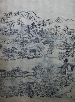 御碑亭附近"古松參天,與榆槐相間,松下有亭曰聽濤。斗姥宮在其后,又西為曲廊水榭,低點水際。其北為邃室,室西長廊數折為廳,顏曰綠楊城郭;廳左為棲鶴亭,老松數株,鶴巢其上,故名。庭前稍右西出為芍園。" (《揚州畫舫錄》)