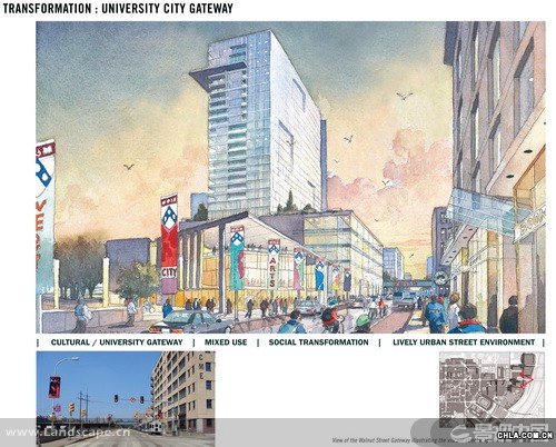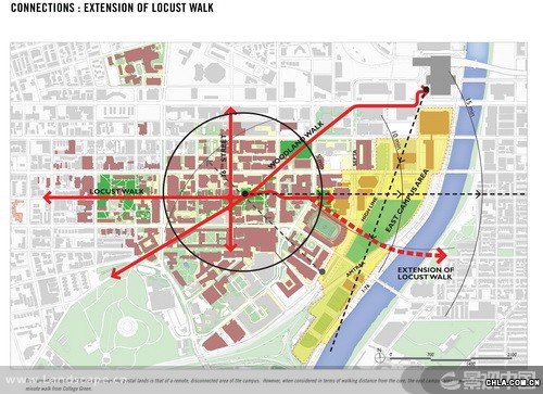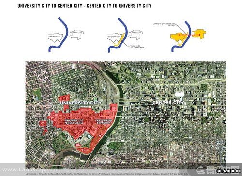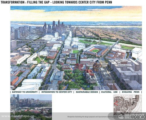 賓大交通樞紐規劃描繪了賓夕法尼亞大學的發展,提出了當代城市規劃與景觀設計的一個重要的功能。它為城市內的大學與其周邊結構相結合以創造出一個既利于公共環境改善也利于大學發展的虛擬的框架提供了很好的實例。結果就是創造出了一個動態的具有混合功能的地區,一方面是對工業用地的再次利用,另一方面是將原有的沿Schuylkill河濱的交通通道轉變為連接城區與大學城的有活力的門戶。