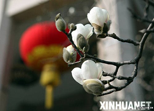 春暖時節,北京街頭盛開的玉蘭花為正在舉行的十一屆全國人大一次會議和全國政協十一屆一次會議更添喜慶氣氛。