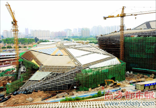 沿著珠江新城臨江大道,遠遠地看過去,一片平緩的山丘上放置著大小不同的兩塊“礫石”。1800座的歌劇場及其配套的設備用房、劇務用房、演出用房、行政用房、錄音棚和藝術展覽廳位于“大石頭”內。順著坡步入5米高的劇院主入口,前廳、休息廳的墻面是石材一片片“拼”成的連綿起伏的山脈,大玻璃使室內外景觀交融。歌劇院于2006年10月10日開始興建,計劃今年6月底項目轉入調試階段,8月底完成各專業分部分項工程驗收,10月底完成政府專項驗收和備案。廣東省博物館新館工程和布展工作目前已基本完成,順利的話,兩個月試運作后預計下個月就可對外開放。以“美麗書籍”為概念的廣州圖書館的建筑構思非常巧妙,不過,由于預算超支,目前只完成了建筑基礎及地下室。據悉,目前廣州市政府正在追加財政撥款,希望能在2010年亞運會舉辦前建成迎客。
