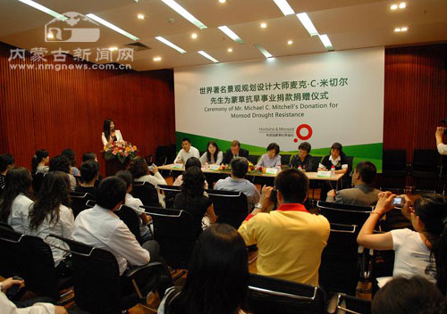 5月20日,對于第二次來到內蒙古的世界景觀規劃大師、MCM集團總裁麥克C.米切爾先生來說,此行目的很明確,一是要為蒙抗旱事業捐款1萬美元,二是與內蒙古和信園蒙草抗旱綠化有限公司簽訂合同,把蒙草節水抗旱植物引進到國外。麥克C.米切爾先生為蒙草抗旱事業捐款1萬美元,