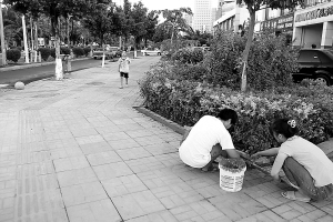 當天,海口市美蘭區出動機關干部以及街道辦、居委會等人員,利用星期天休息時間,走上街頭整治環境衛生。與以往不同的是,主要街道上看不到滿街手拿掃把搞衛生的人群,而一些不被人注意的犄角旮旯的路邊臺階、人行道地磚、綠化帶旁,卻到處都是忙碌的身影。