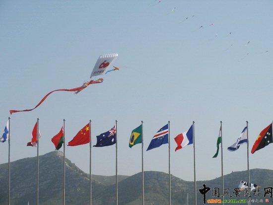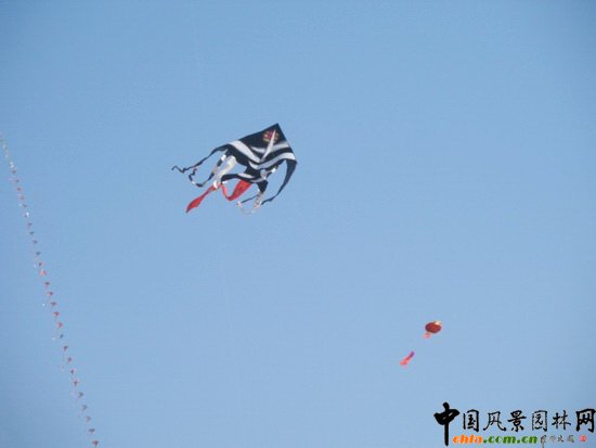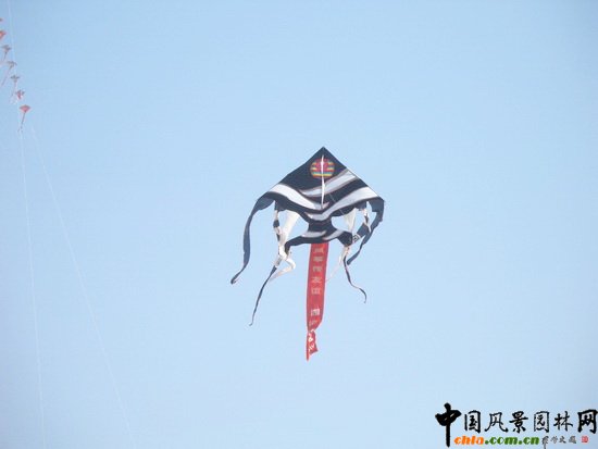 具有山東地方特色的風箏飛揚在泉韻廣場上方:
