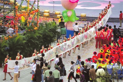 開幕式上,七輛設計新穎、動感十足的花車格外引人注目。七博之花、祖國之花、奧運之花、友誼之花、科技之花、北京之花、綠港之花,每輛花車都詮釋著花的文化。