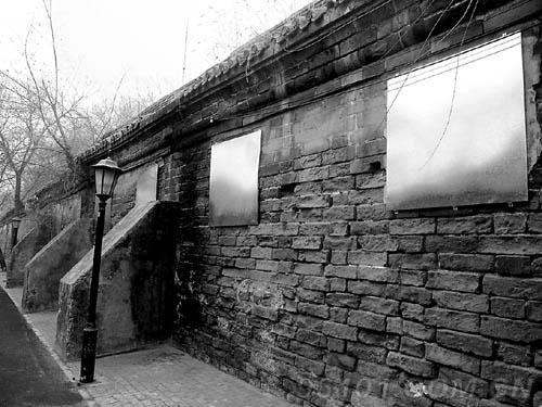 昨天,記者在氈子胡同北口看到,胡同西側正是恭王府的外墻。就在磚墻之上,釘著一塊塊的鐵板,由北向南共有13塊。住在胡同內的劉先生告訴記者,這些鐵板后面都是原來開窗戶的地方,“那些窗戶都已經古舊,紗窗等物件都破掉了。”恭王府的工作人員表示,釘上鐵板一是在春節期間防止煙花爆濺入引起火災,今后更主要的用途是防盜。